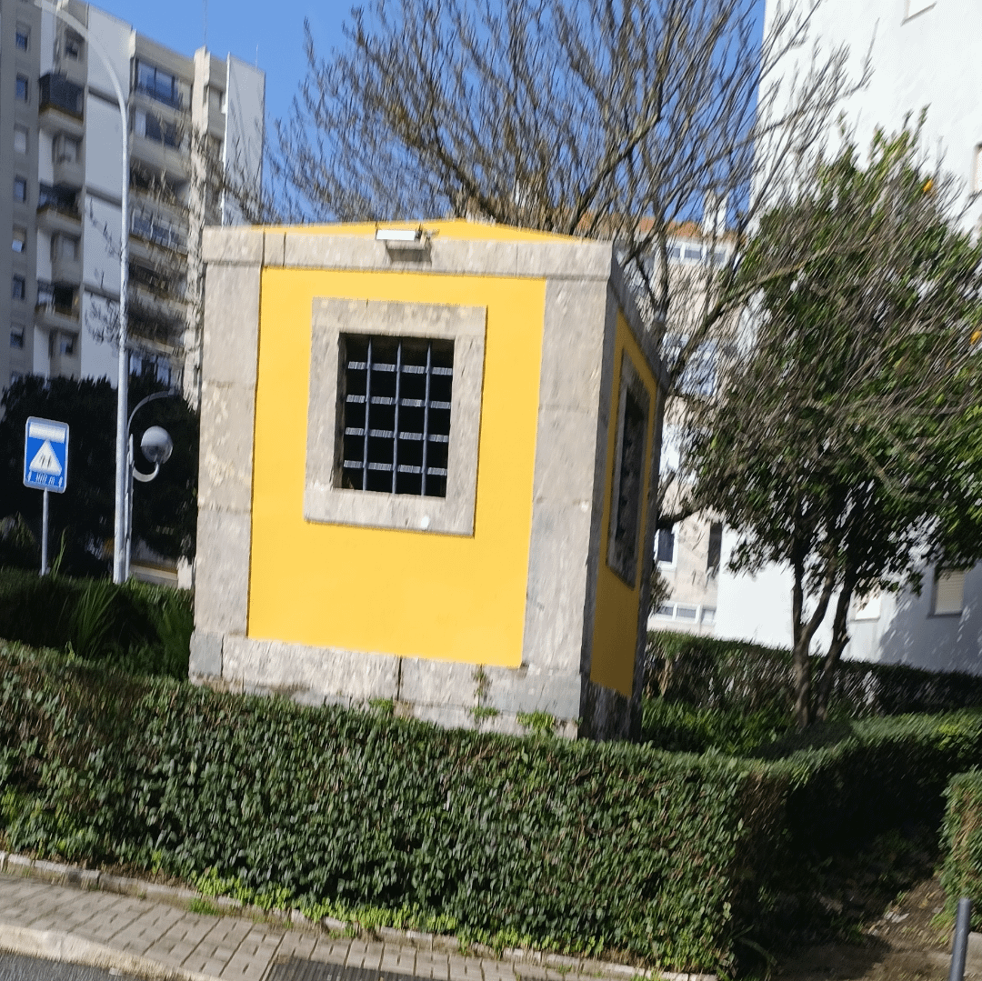 Sao respiradouros do aqueduto, servem para ventilar as galerias subterraneas. Tens bastantes espalhados por Lisboa, a maioria das pessoas passa por eles todos os dias sem fazer ideia do que sao. Se quiseres ver o aqueduto por dentro ha visitas guiadas que passam por la, vale muito a pena.