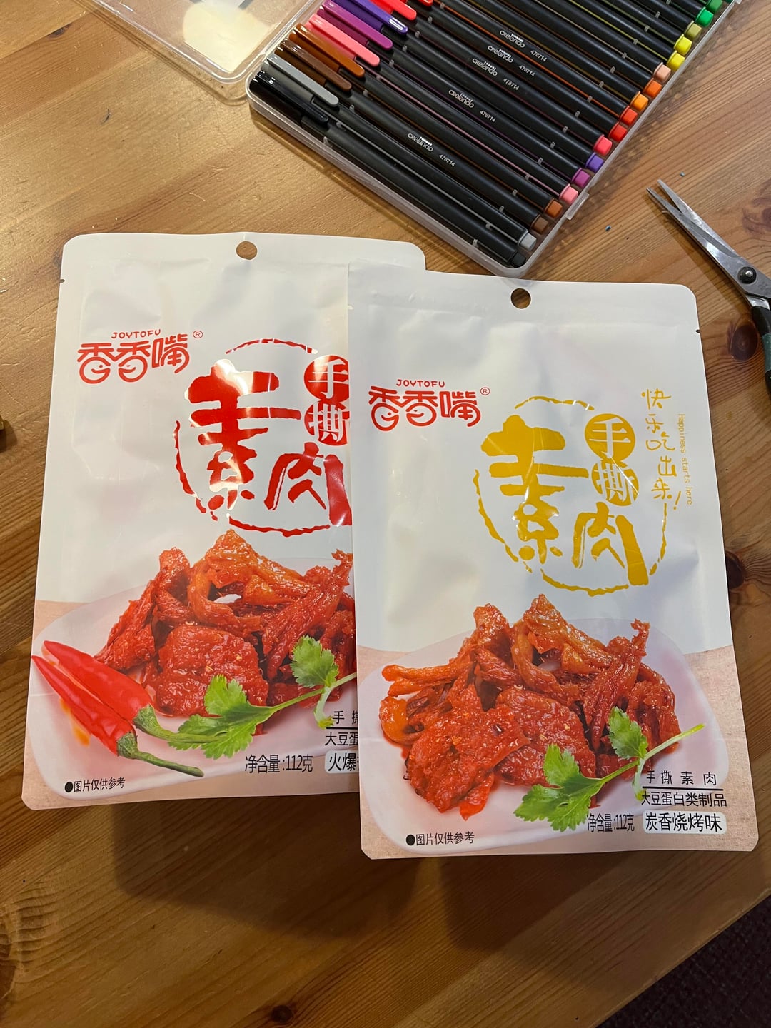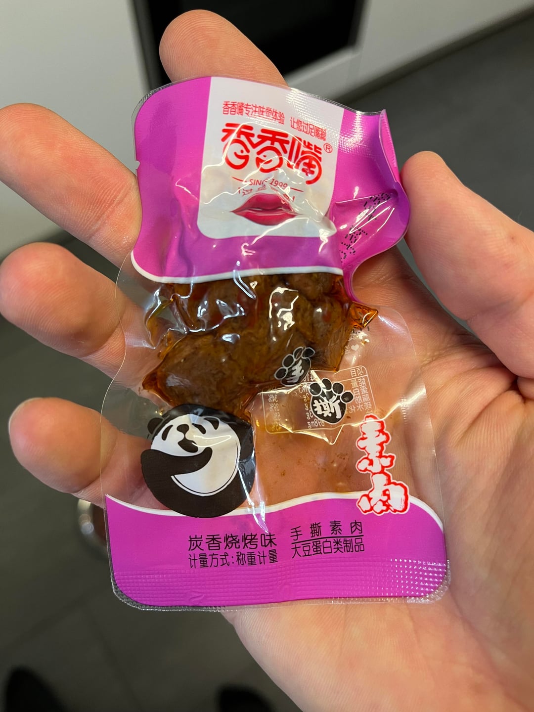 Hab neulich zwei Packungen von diesem Tofu Snack aus dem Asiashop gekauft.