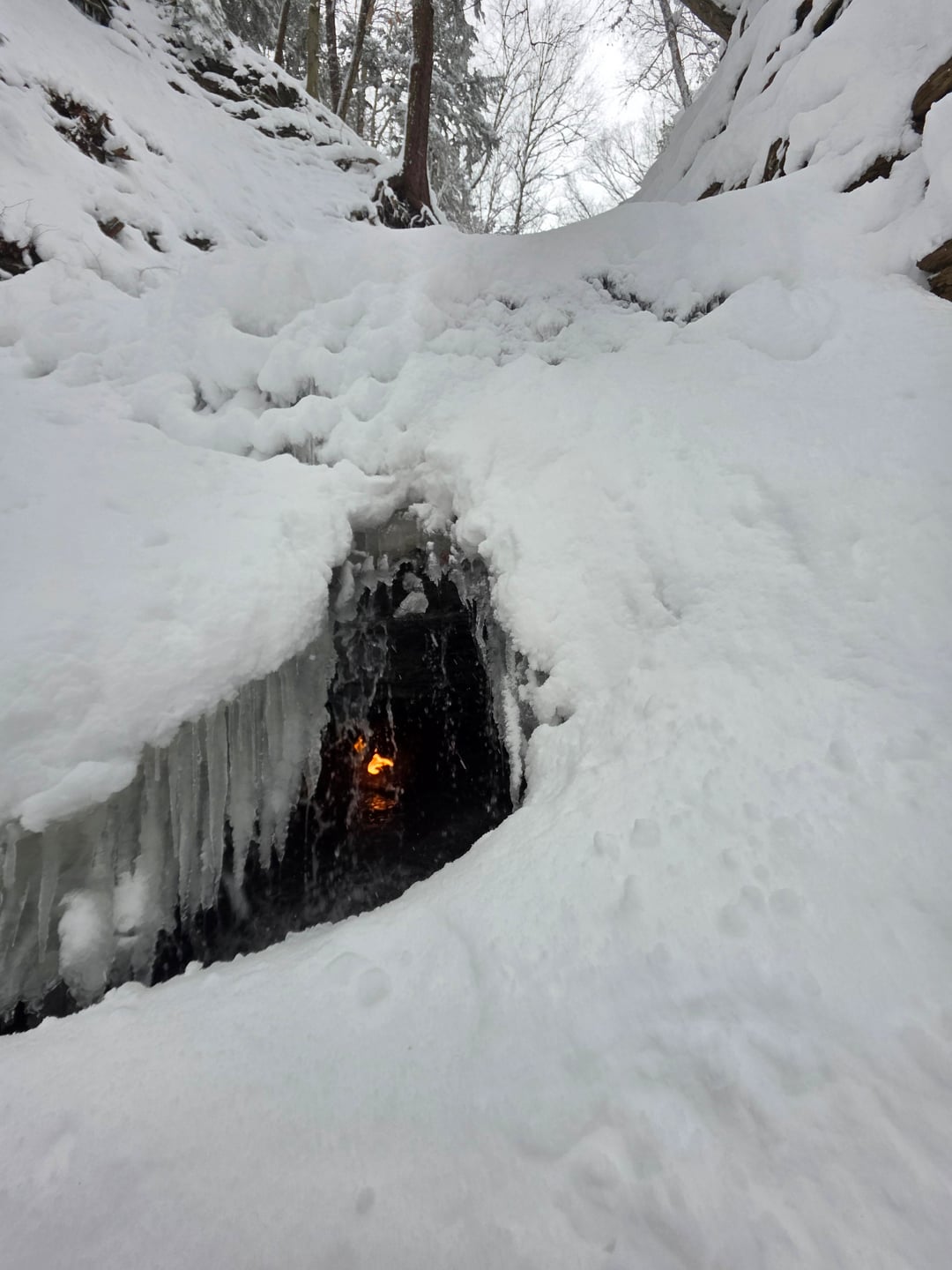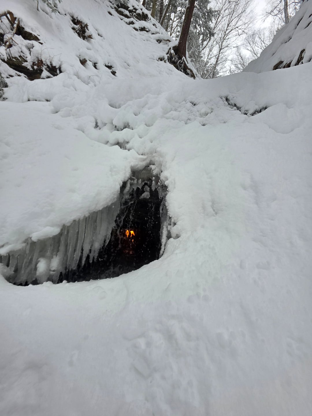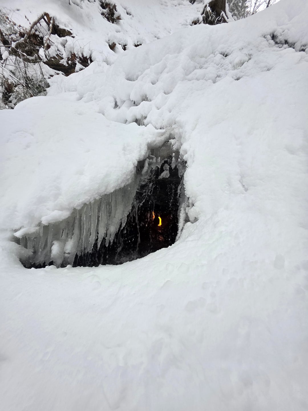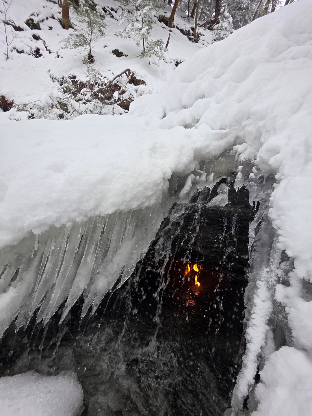 Ich habe einen Beitrag über diesen magischen Ort aus der Herbstsaison gesehen. Dies war dieses Jahr nach einem Schneesturm. Die Flamme blieb trotz all dem Schnee und der Kälte brennen! Von No-Value-8156