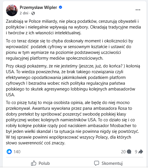 Przemysław Wipler [Konfederacja] spricht mit der Stimme von Together und will große amerikanische Konzerne besteuern