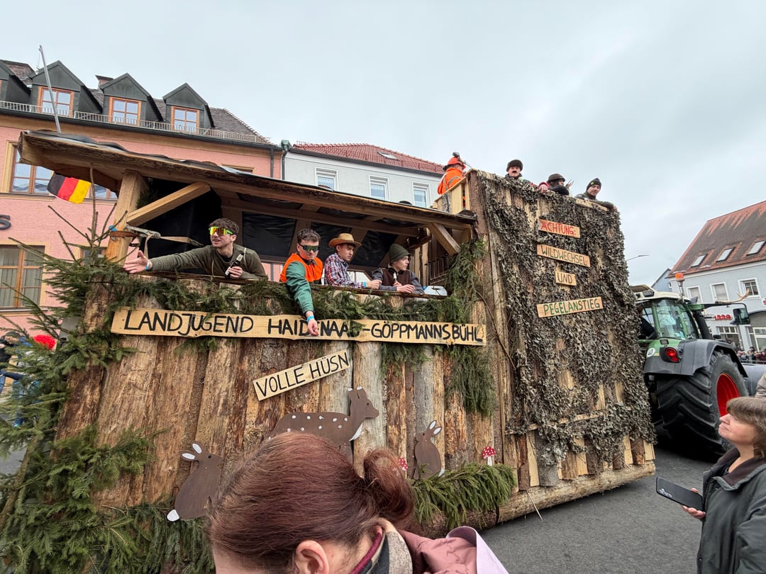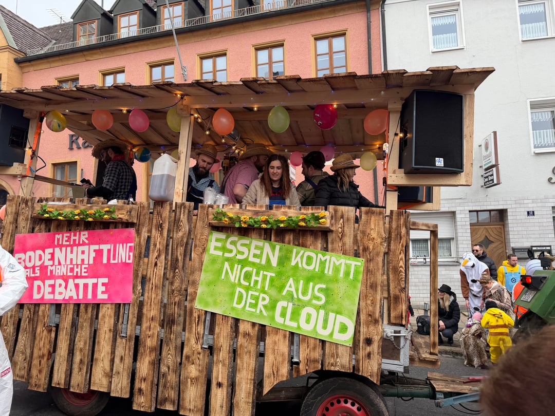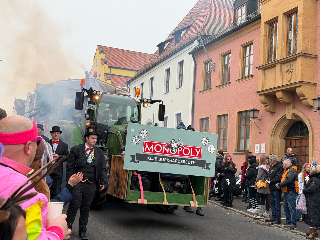 Well, Karneval originated in the idea of having a season when commoners were allowed to speak truth to power, so the best processions have floats satirizing local and national politics and religion. I assume the KLJB Burkhardsreuth’s „Monopoly“ float is trying to make a point about the housing crisis?