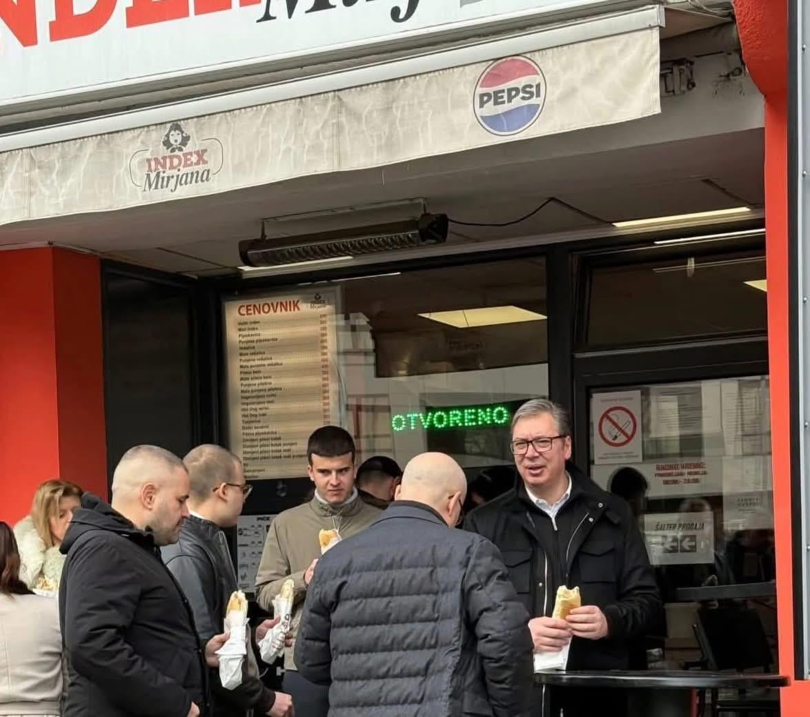 Zašto repostujete Vučićevu propagandu „kao on je običan čovek koji jede na ulicu brzu hranu“. Ovakve teme treba da se brišu.posle ovoga je otišao i popio flašu vina od 1k €