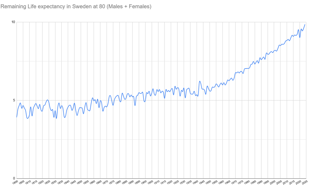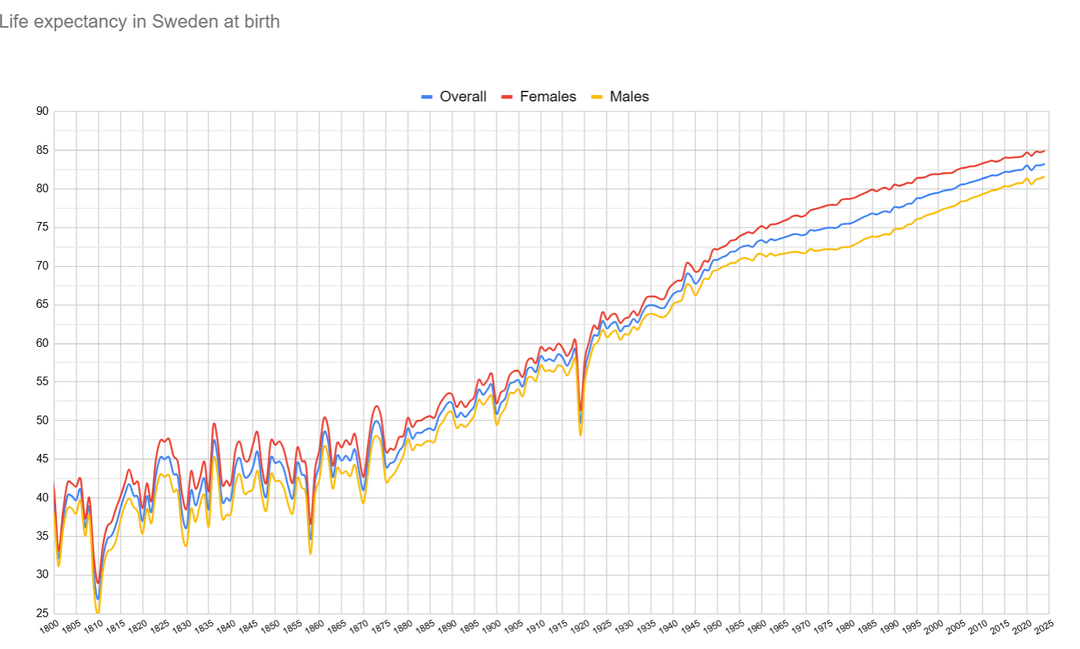 Bild 1: Lebenserwartung in Schweden bei der Geburt (1800–2025)