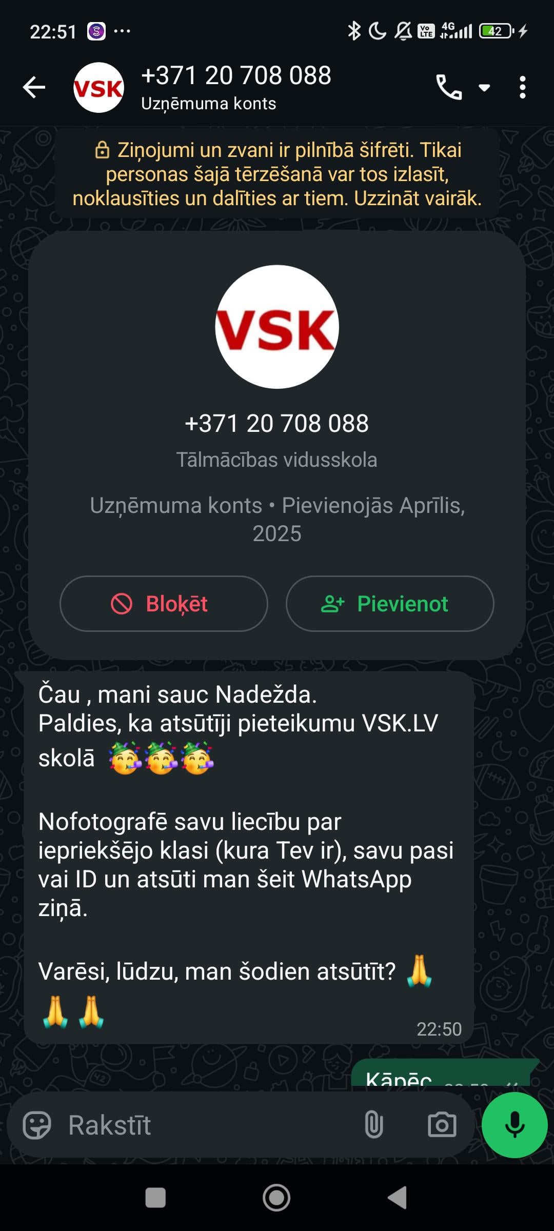 [https://vsk.lv/v/kontakti/](https://vsk.lv/v/kontakti/) izskatās ka te ir tas pats nr. Kāpēc nevar pievienot failu augšuplādi tajā pašā lapā, jeb lai skolotāji to nokārto. Ja neuzticies tad labāk paprasi skolotājiem vai vadībai.