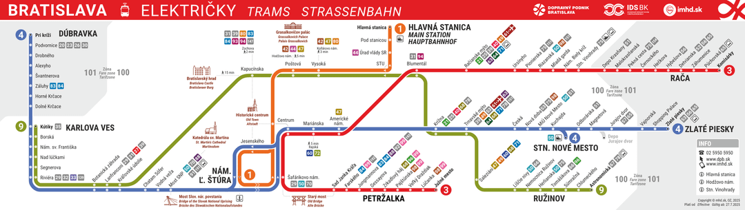 Beide Faktoren sind meiner Meinung nach im Vergleich zu Brünn, einer ähnlich großen Stadt, recht dürftig. In Brünn verfügen wir über 11 Straßenbahnverbindungen und mindestens zwei Umsteigepunkte (Česká und Hlavná stanica), wo es wirklich kein Problem ist, eine Verbindung von überall nach überall zu finden.