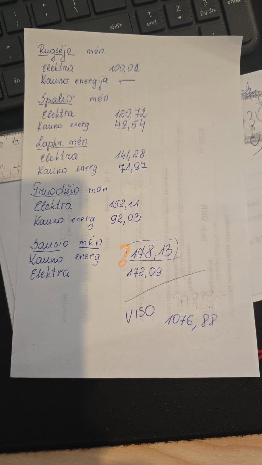 Prašyk normalių sąskaitų iš paslaugų teikėjų, o ne ant popieriaus surašyta. Nors kainos aukštesnės, bet ką tu veiki kad elektros už 120-150 Eur prisuki? Iš energijos ir bent 20-40 eur mažiau tikėčiaus.