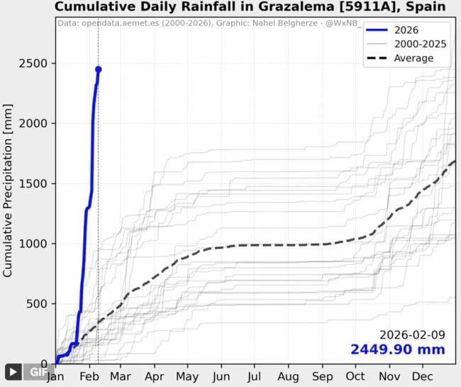 Kumulierter täglicher Niederschlag in Grazalema (Spanien)
