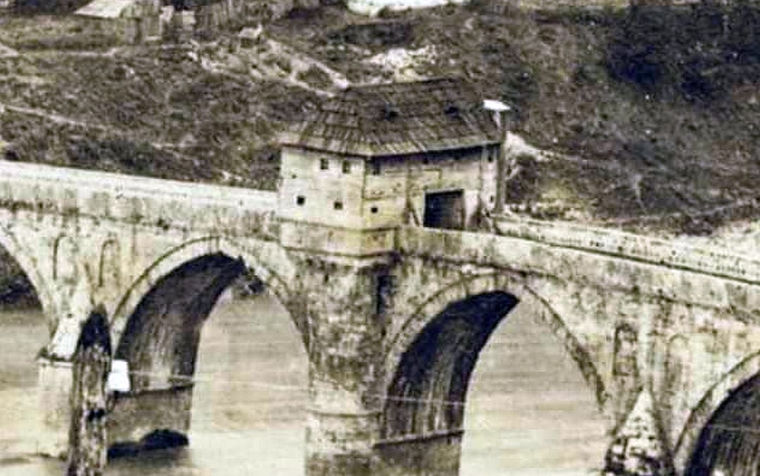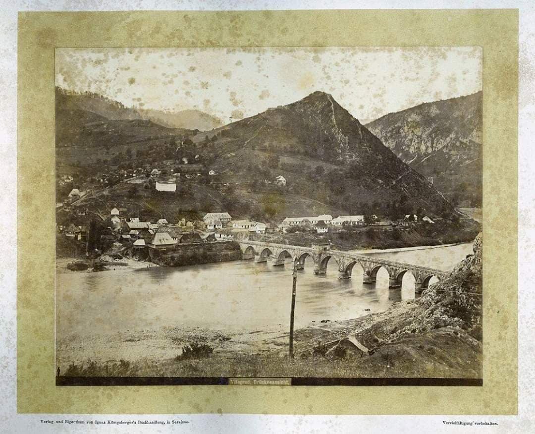 "In der Mitte dieser Brücke stand ein Holzturm, dessen Entstehungszeit unbekannt ist und der 1886 abgerissen wurde. Der Turm war ein Wachhaus mit einem darunter liegenden Durchgang, der auf beiden Seiten durch starke Eichentüren verschlossen war. Auf dem Turm befanden sich mehrere kleine Kanonen namens Shibe. Auf der Brücke befanden sich zwei Verse in Versform mit eingravierten Jahreszahlen – auf dem ersten 971-/1571 und auf dem zweiten 985/1577." Mehr zur Brücke und Bilder unter dem Link https://www.biserje.ba/rijetka-fotografija-visegradskog-mosta/