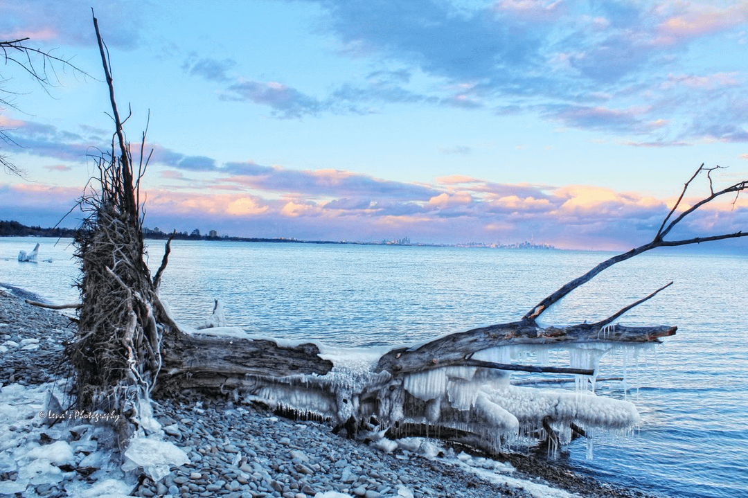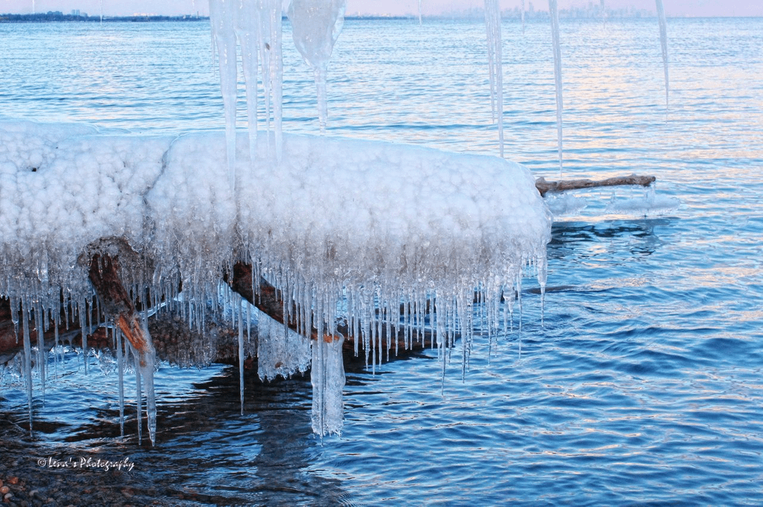 Es ist faszinierend zu sehen, wie die Wellen und die Kälte das Ufer in eine abstrakte Eisgalerie verwandeln.