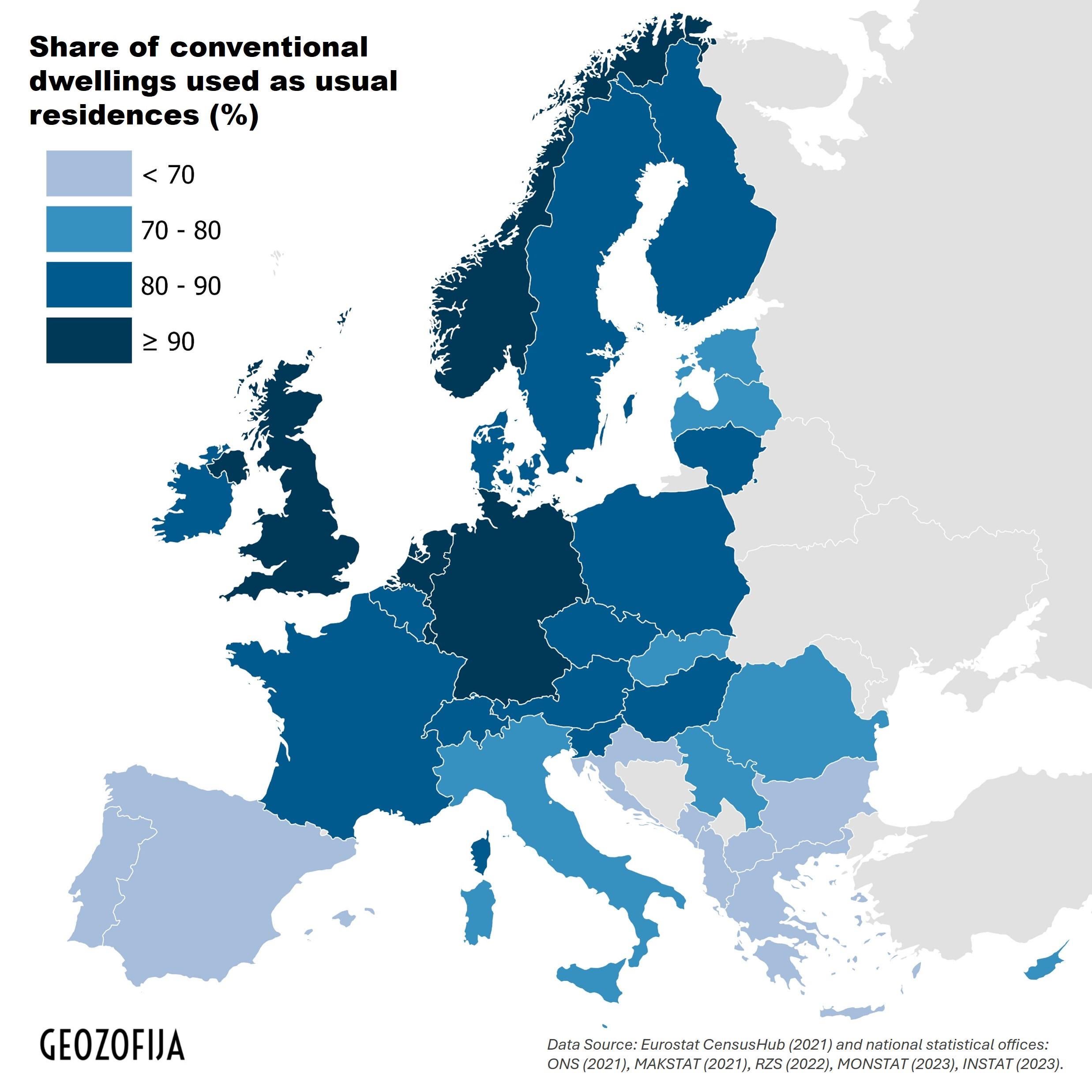 🔗Die vollständige Analyse und detaillierte Prozentwerte finden Sie unten: https://www.geozofija.com/analysis-of-europes-housing-stock-what-share-of-conventional-dwellings-is-actually-used-as-usual-residences
