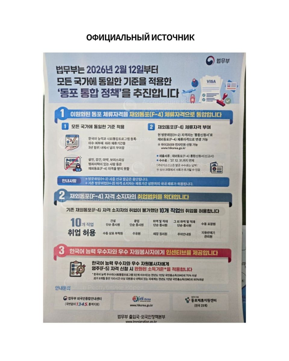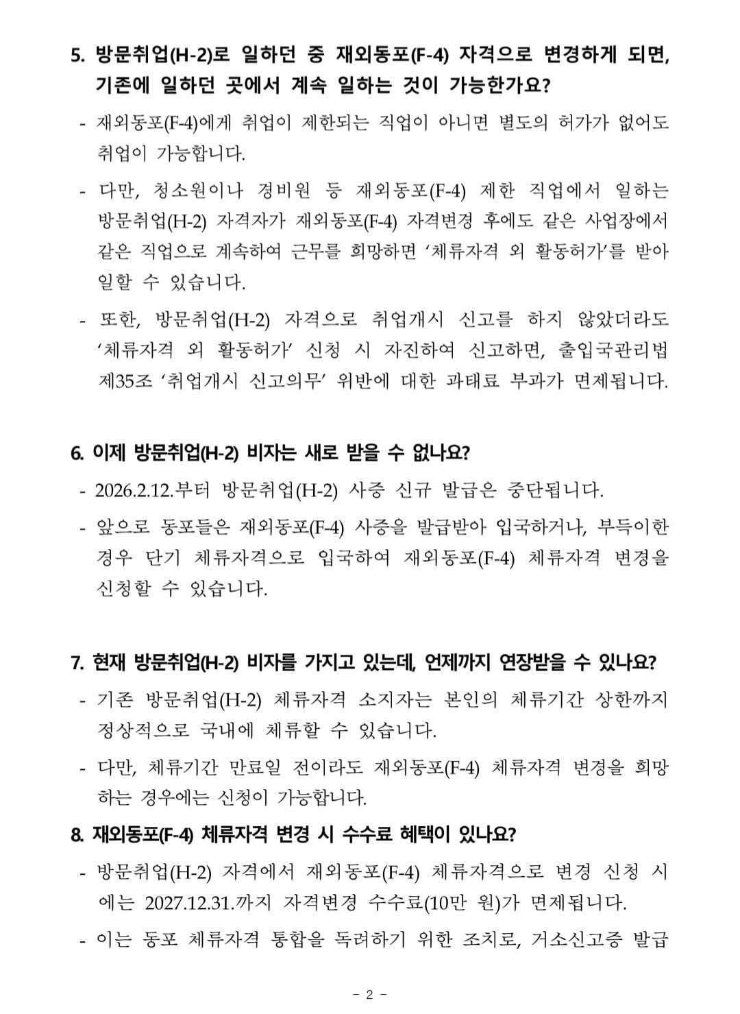 Seit dem 12.02.2025 werden die Visa H-2 (Arbeit und Besuch) und F-4 (Übersee-Koreanisch) in einem Visum (F-4) zusammengefasst.