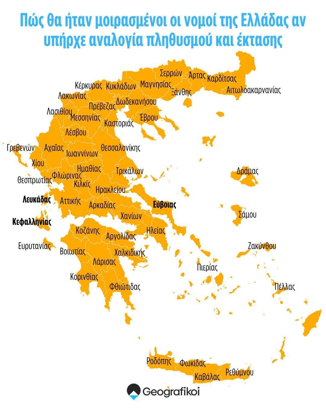 Attiki, die Präfektur mit der größten Bevölkerung, zieht nach Etoloakarnania, der Präfektur mit der größten Fläche.