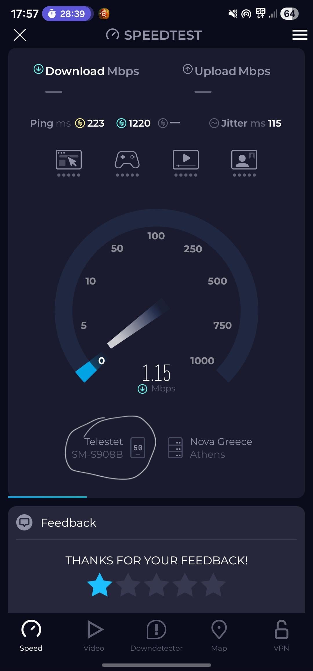 Thankfully I don’t need 5G at my home because I have Fiber connection with Cyta, and I always get at least the advertised speed with that (500+ down and 120+ up)