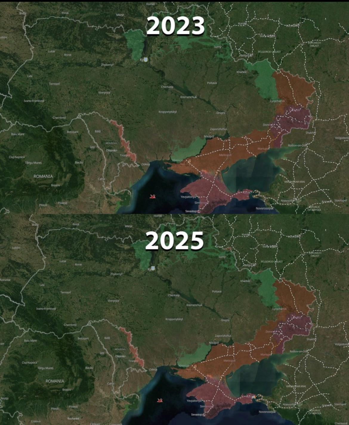 I wouldn’t be ‚too happy‘ about the relatively ‚meagre‘ advancements. It was a big thing for Russia to push the UA army from the outskirts of Donetsk to quite a way away, as UA slowly cedes incredibly strategic towns and villages on that frontline. It also means that UA is light years away from its own war objectives which are to recapture the territory in red.