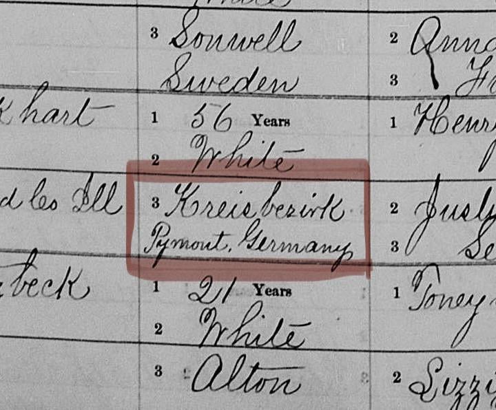 Kann mir jemand den genauen Standort nennen/wie dieser Ort heute heißt? Aus einer Heiratsurkunde in den USA des späten 19. Jahrhunderts