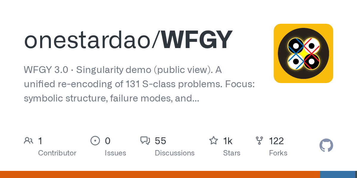 WFGY · Alle Prinzipien kehren zu einem zurück (MIT, nur Text, 131 Spannungsfragen) https://github.com/onestardao/WFGY