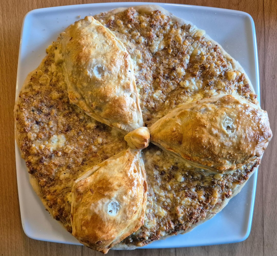 Alles in Allem ein fleischig-dekadenter Fladen, der ein ein schönes mittelalterlich-rustikales Gericht darstellt. Die zwei Sorten Fleisch (auf dem Fladen und in den Basteln) würde ich beim nächsten Mal aber mehr und unterschiedlicher würzen, sodass sie einen Kontrast zueinander bilden.