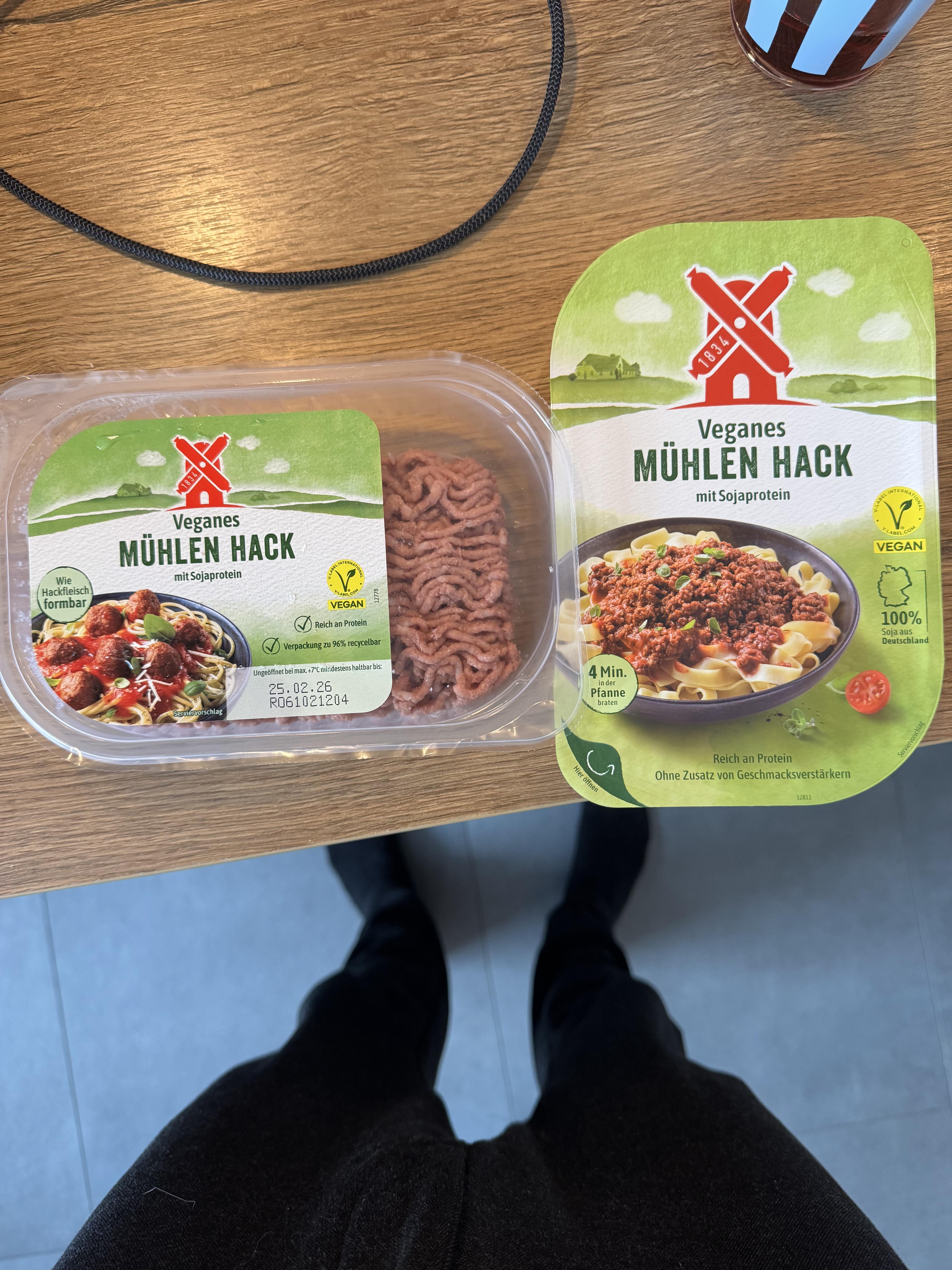 Ich kann dir das Hack von der Rewe Hausmarke empfehlen – ist nicht so krümelig wie rechts sondern verhält sich imo wie „echtes“ Hack und kostet auch weniger :))