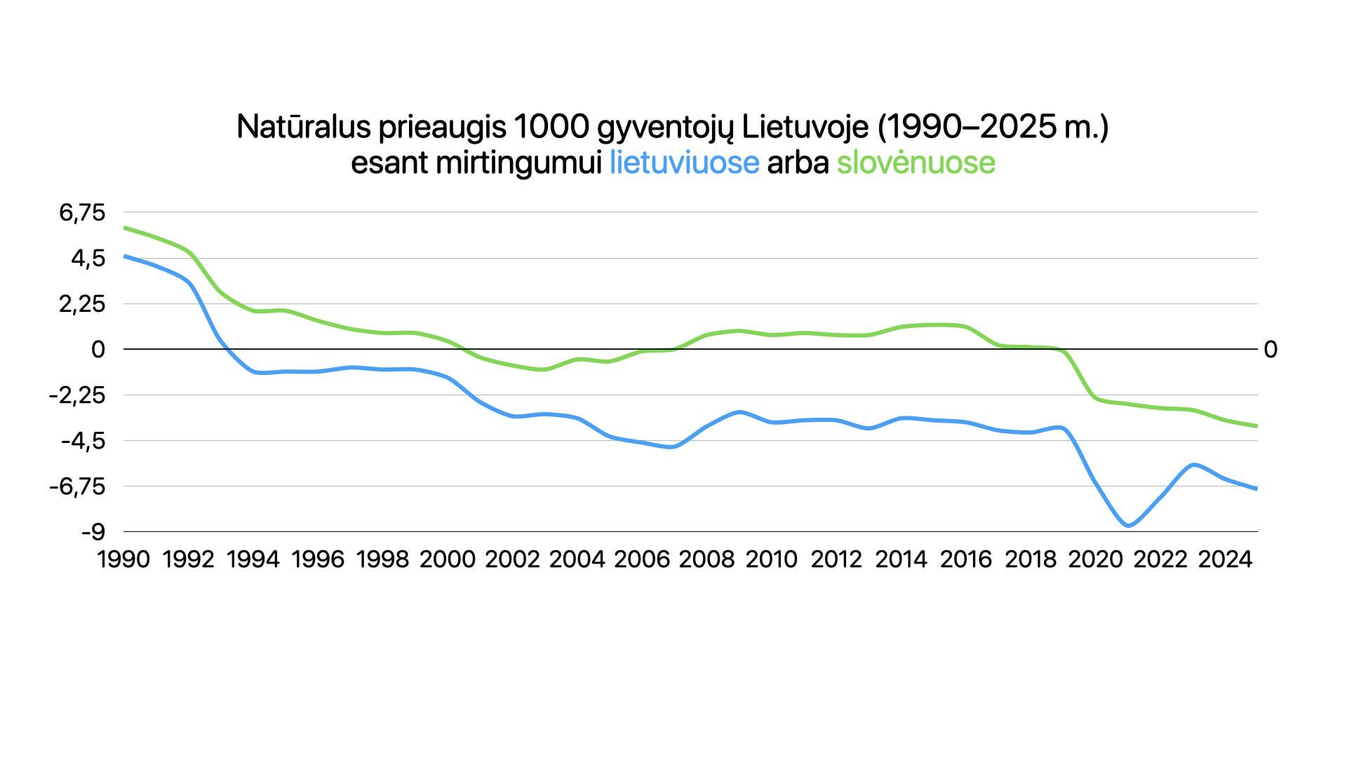 Litauens natürliches Bevölkerungswachstum, wenn die Sterblichkeitsrate niedriger wäre (entspricht Slowenien)