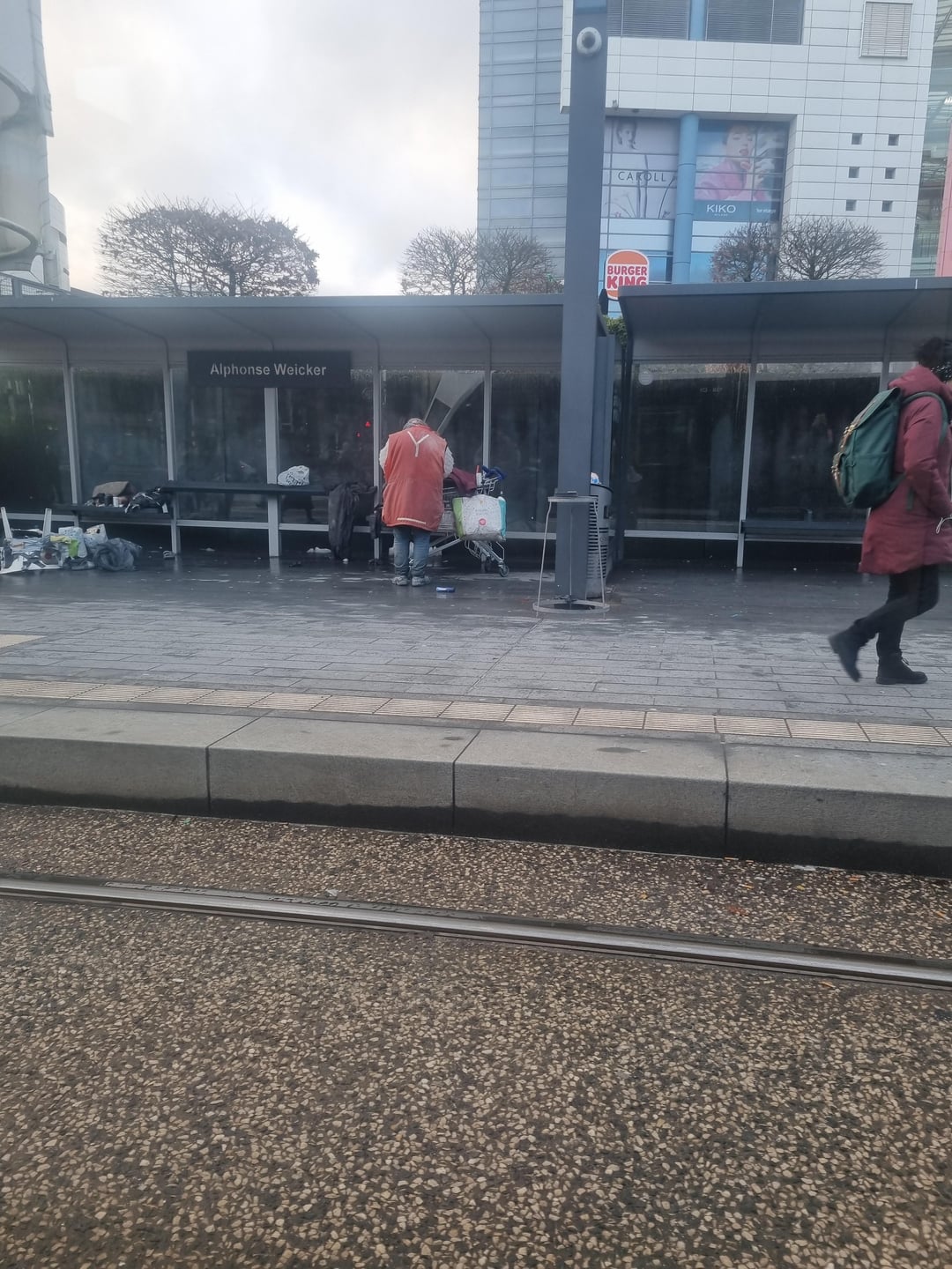 He used to sleep over at the entrance of our apartment building (Steinfort). Needed to put time-sensitive locks on the outer doors to keep him out (he blocked the entrance completely and had a terrible smell).