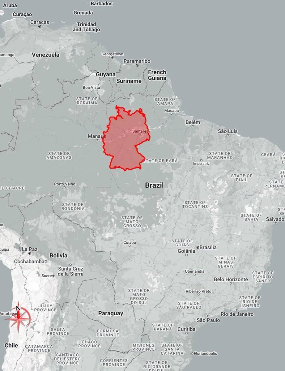 Damn, I thought this was BS but it’s real. Brazil is 24x bigger than Germany