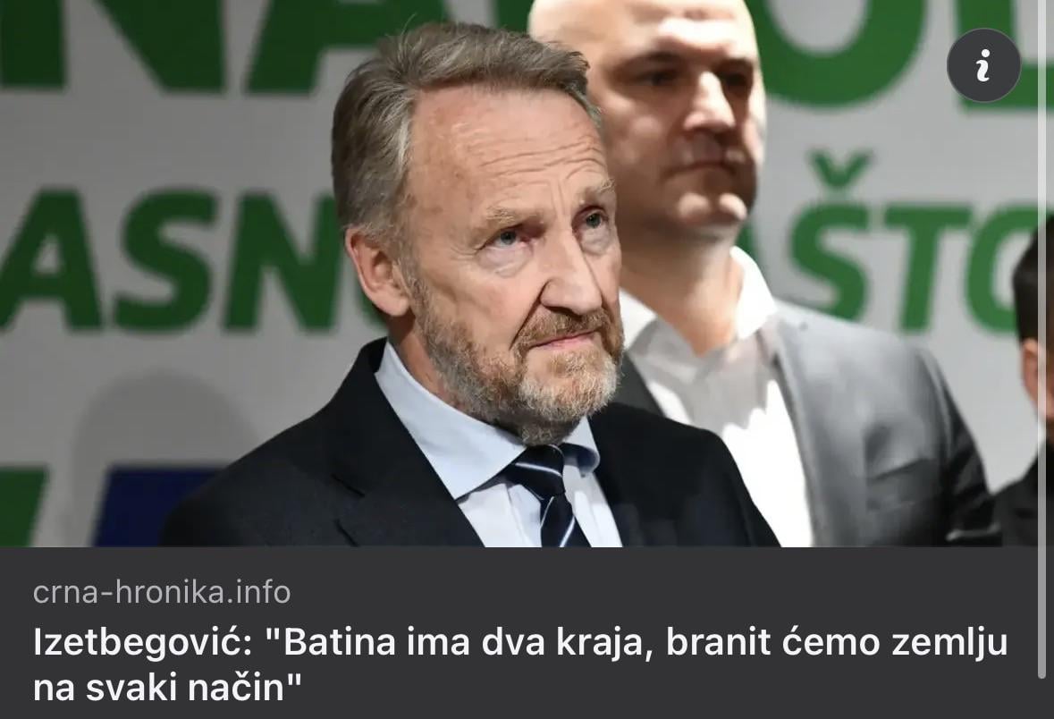 Mene je strah njegovog narativa tj. SDA stranke. Imam osjecaj da oni nebi bjezali od ratnog stanja. Meni je dosta toga 92ge. Ne zelim da djeca prolaze sto smo mi stariji 92 do 95. S 19g gurnuli pusku u ruke.