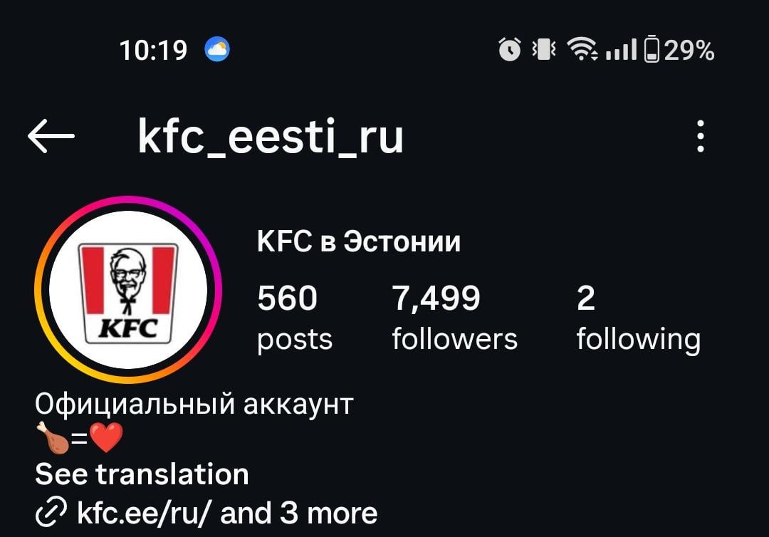 KFC vene teenindajad on põnevad. Ootasin 30 minutit oma sööki (kiirtoitu!). Läksin küsima, kus mu söök on. Vastus: „Jalaga läheb kauem kui kanaga.“ Olin tellinud kanakoibi.
