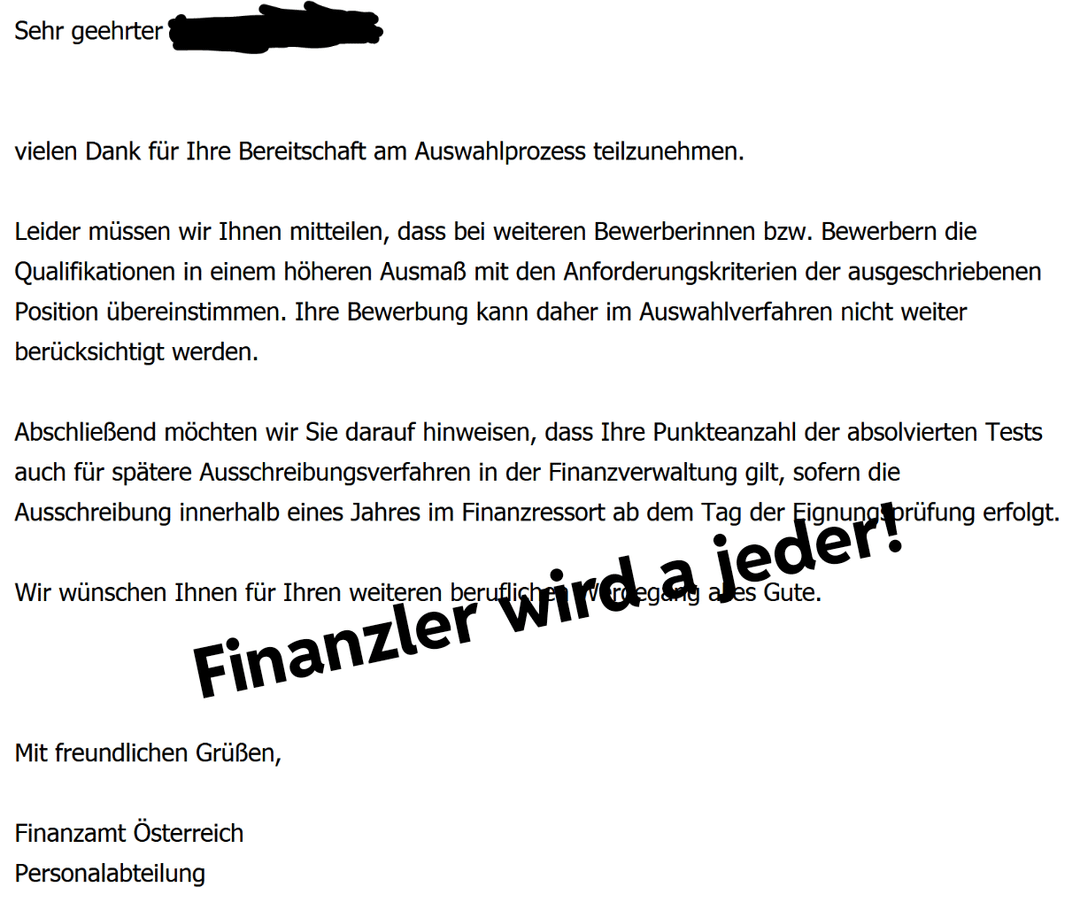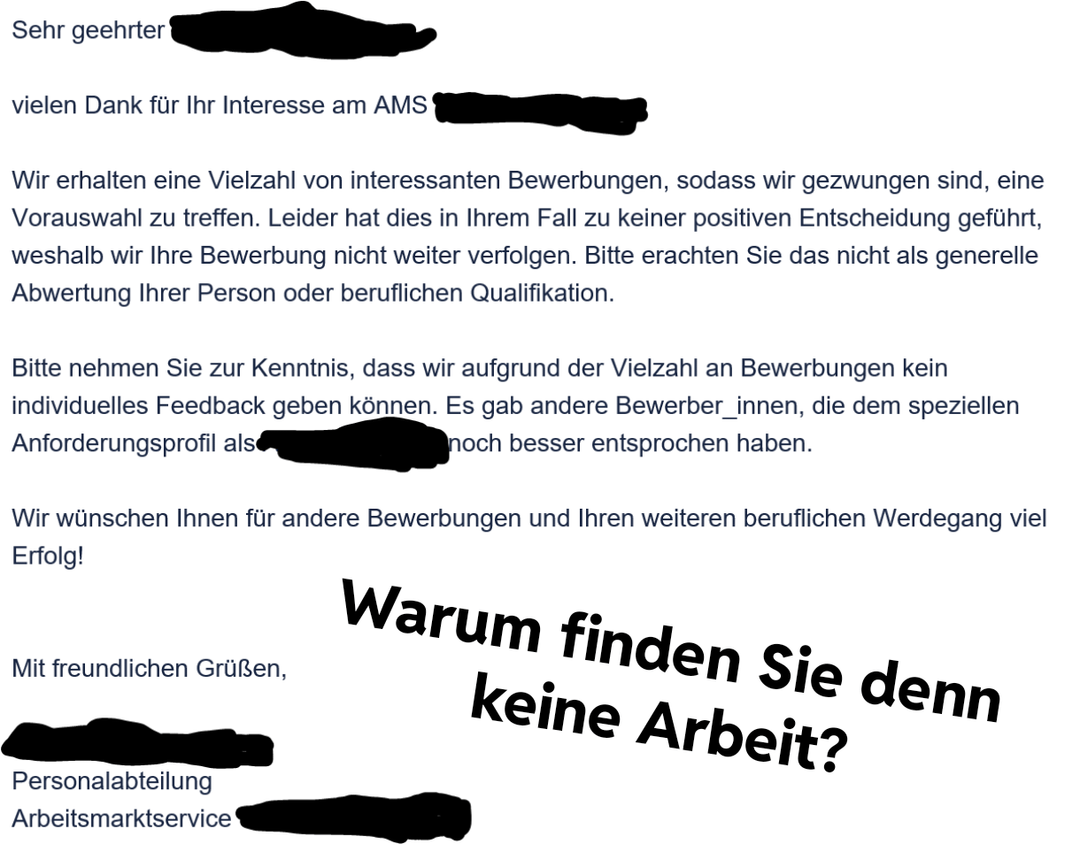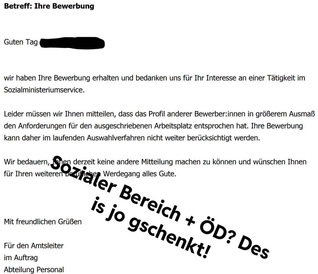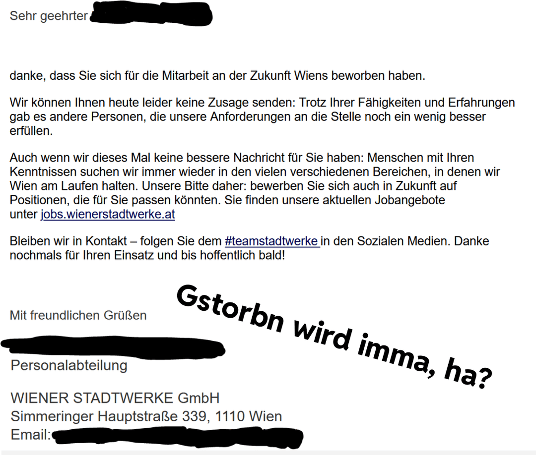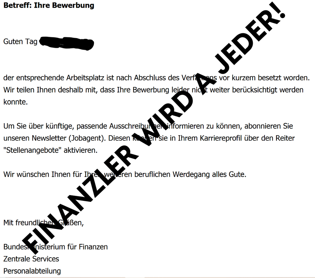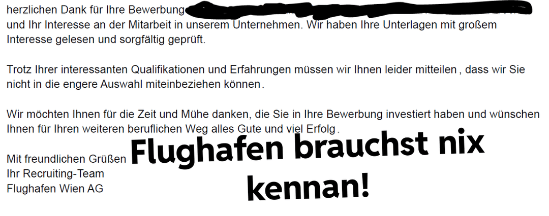 Ich liebs auch wenn sie schreiben ein anderer Bewerber hat besser gepasst, aber die selbe Stelle noch wochenlang weiter ausgeschrieben bleibt…
