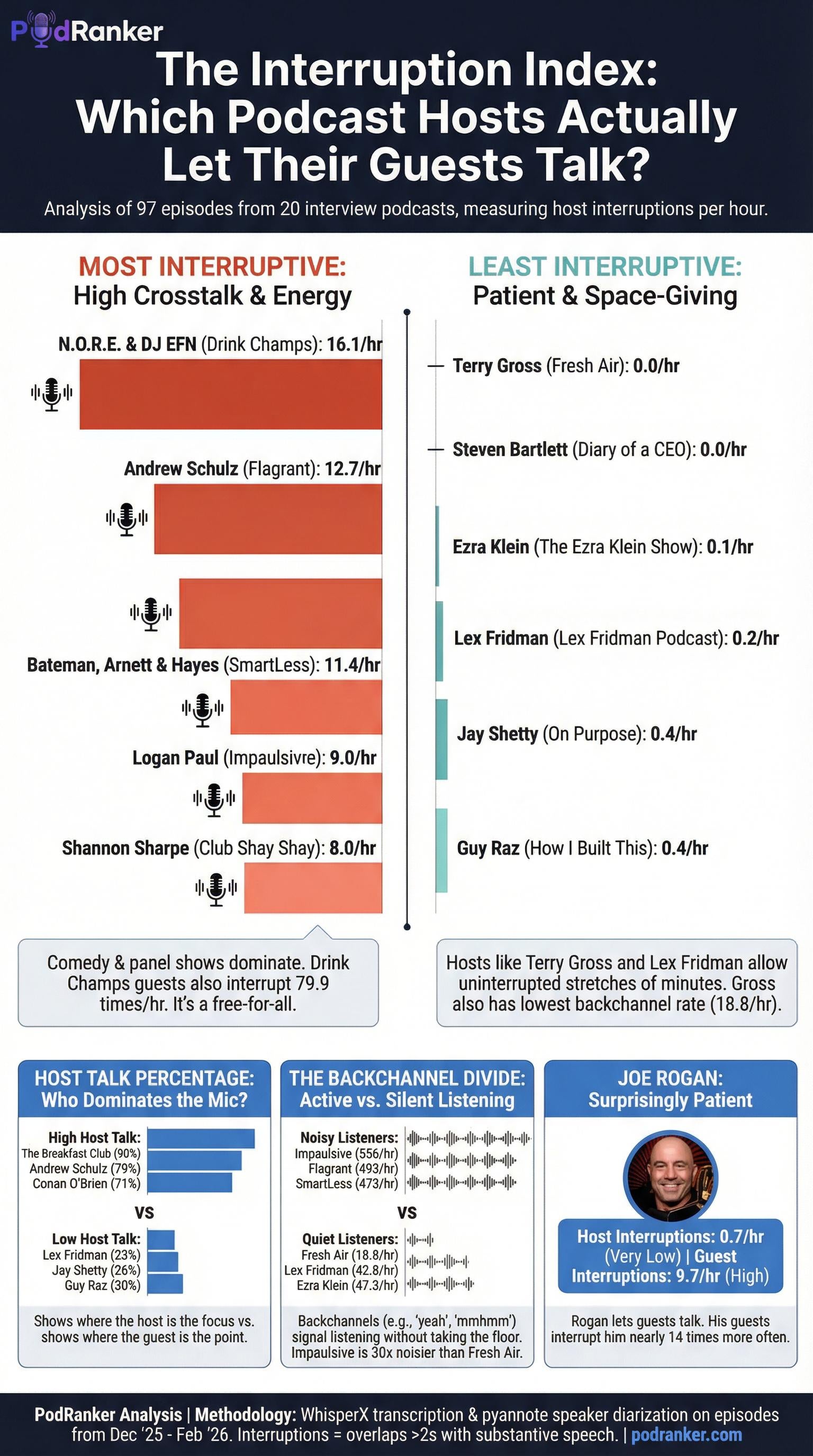 Source and method is here [https://podranker.com/blog/which-podcast-hosts-interrupt-most-we-ranked-20/](https://podranker.com/blog/which-podcast-hosts-interrupt-most-we-ranked-20/)