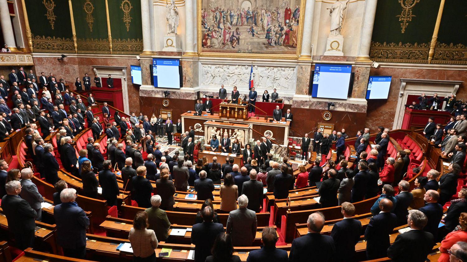 L’Assemblée nationale lors de l’hommage au militant nationaliste Quentin Deranque, à Paris, le 17 février 2026. (HENRIQUE CAMPOS / HANS LUCAS / AFP)