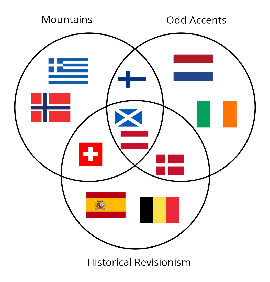 finland bei odd accents, schweiz nicht? keine berge in spanien? wth