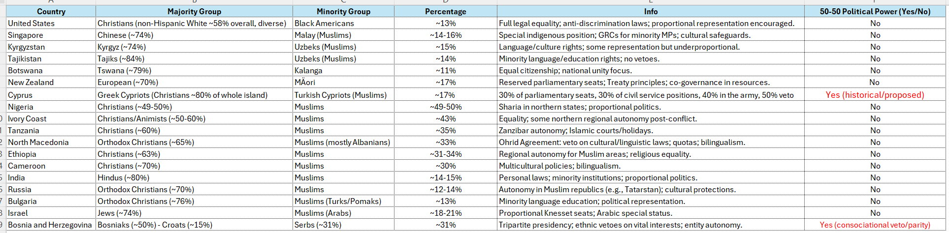 None of these give a 50% power share to an 18% (or even bigger) minority.