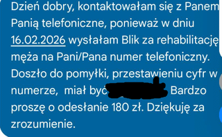 Oszustwo. Jeśli chcesz zwrócić przelew, to na numer telefonu, z którego przyszedł