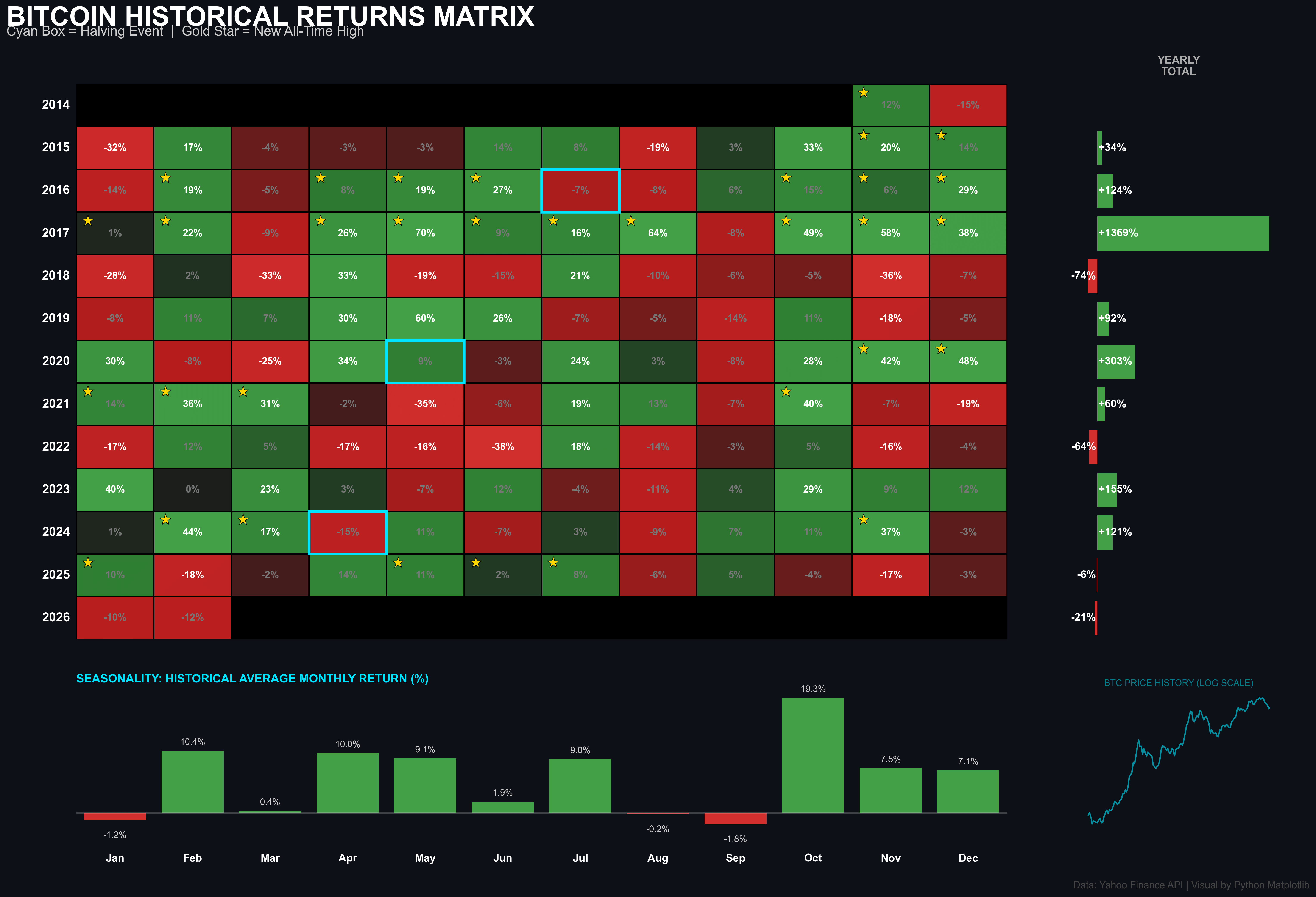 I built this visualization using Python (Matplotlib) to track how BTC performs month-over-month.