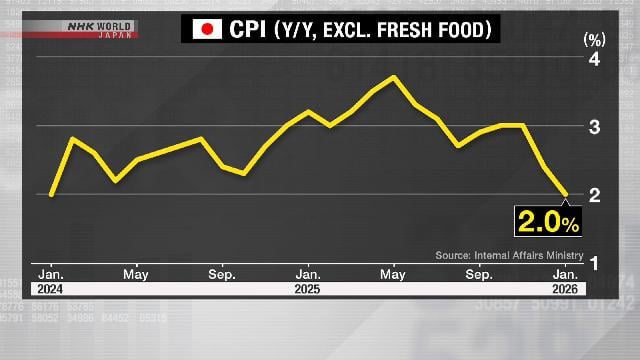 Share Facebook Twitter LinkedIn Pinterest Bluesky Threads Japans Inflation lässt im Januar nach https://www3.nhk.or.jp/nhkworld/en/news/20260220_B4/