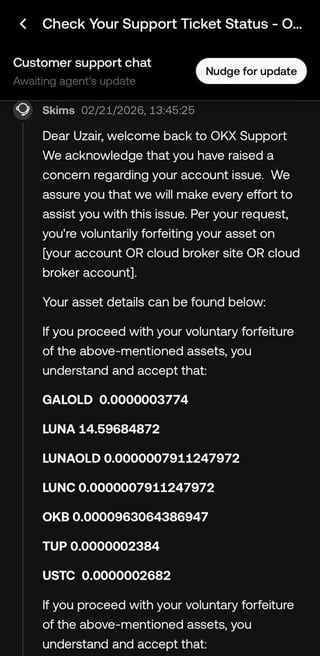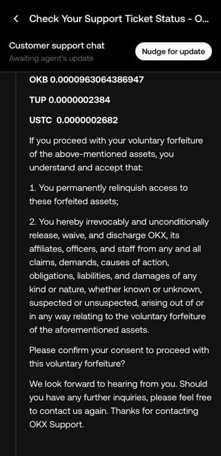 Heute habe ich mich nach einigen Jahren in mein OKX-Konto eingeloggt, die Verifizierung versucht und aus dem Nichts hat mich der Support dazu veranlasst, mein Geld freiwillig aufzugeben. Ist das ein Witz?