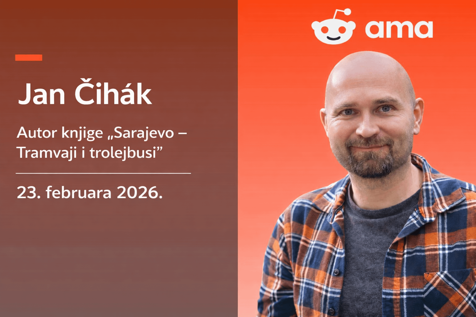 Wir werden am Montag ein neues AMA haben. Jan Čihák, Autor des Buches, besucht uns aus Tschechien "Sarajevo – Straßenbahnen und Oberleitungsbusse".