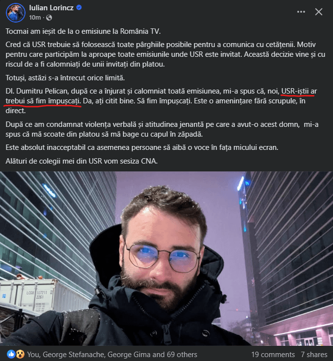 De ce USR nu plusează să îl reclame și la **CNDC, pentru a primi o amendă pentru discriminare**, apoi **plîngere penală pentru instigare la violență la televiziunea cu cel mai mare rating din țară**, precum și deschidere proces de **calomnie în instanță**, având în vedere că el a avut rolul de a strica reputația USR-ului, Nu?!
