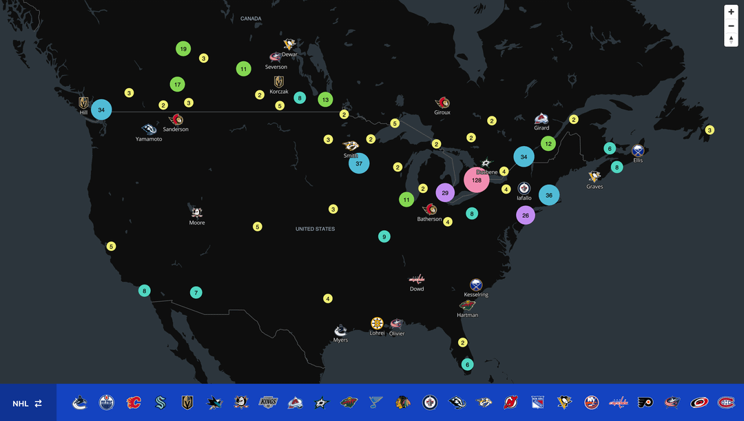 1. This is super cool, thanks for building and sharing! I spent half a year in Umeå, Sweden during my undergrad and had no idea they had a current NHL player – Carl Grundström.