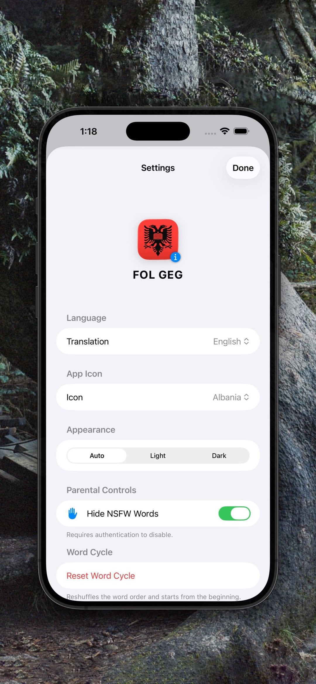 Ich habe diese App vor ein paar Monaten mit dem Plan veröffentlicht, einige weitere Funktionen hinzuzufügen – darunter die Audio-Aussprache. Dies ist jetzt als kostenloses Update für alle, die die App gekauft haben, enthalten; zusammen mit anderen Updates. Ein Grammatikblatt in den Einstellungen und die Möglichkeit, die Symbole in die Flagge 🇦🇱 oder 🇽🇰 zu ändern.