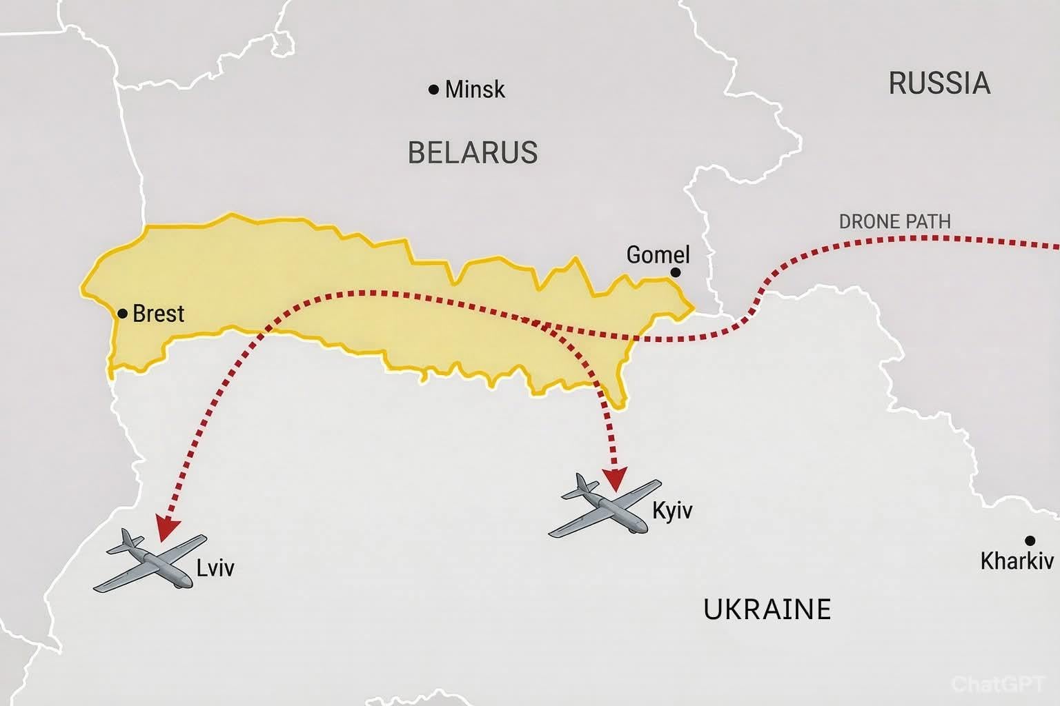 Wenn Sie sich ein Auto geliehen hätten, um eine Bank auszurauben, würden Sie wie Bankräuber strafrechtlich verfolgt. Und wenn Weißrussland Russland erlaubt, Relaisstationen zu bauen und zivile Infrastruktur bereitzustellen und so die Flugreichweite russischer Drohnen zu erweitern – nichts?