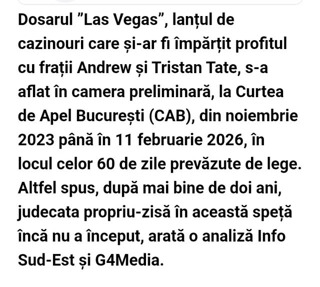 După peste 2 ani petrecuți în camera preliminară , acea zona crepusculară unde dosarele intră și timpul iese la pensie, încă un episod din saga fraților Tate se întoarce la DIICOT pentru ”ajustări procedurale”.