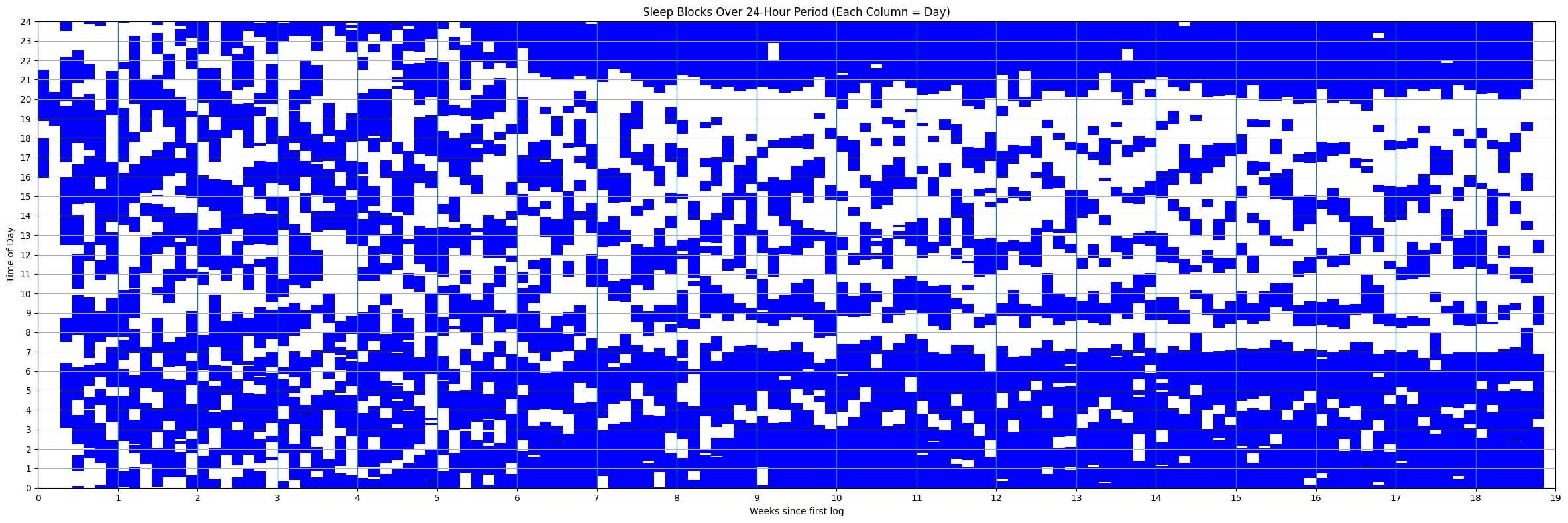 This would be better if the night time sleep wasn’t separated visually. Like, start time of say axis at 20.