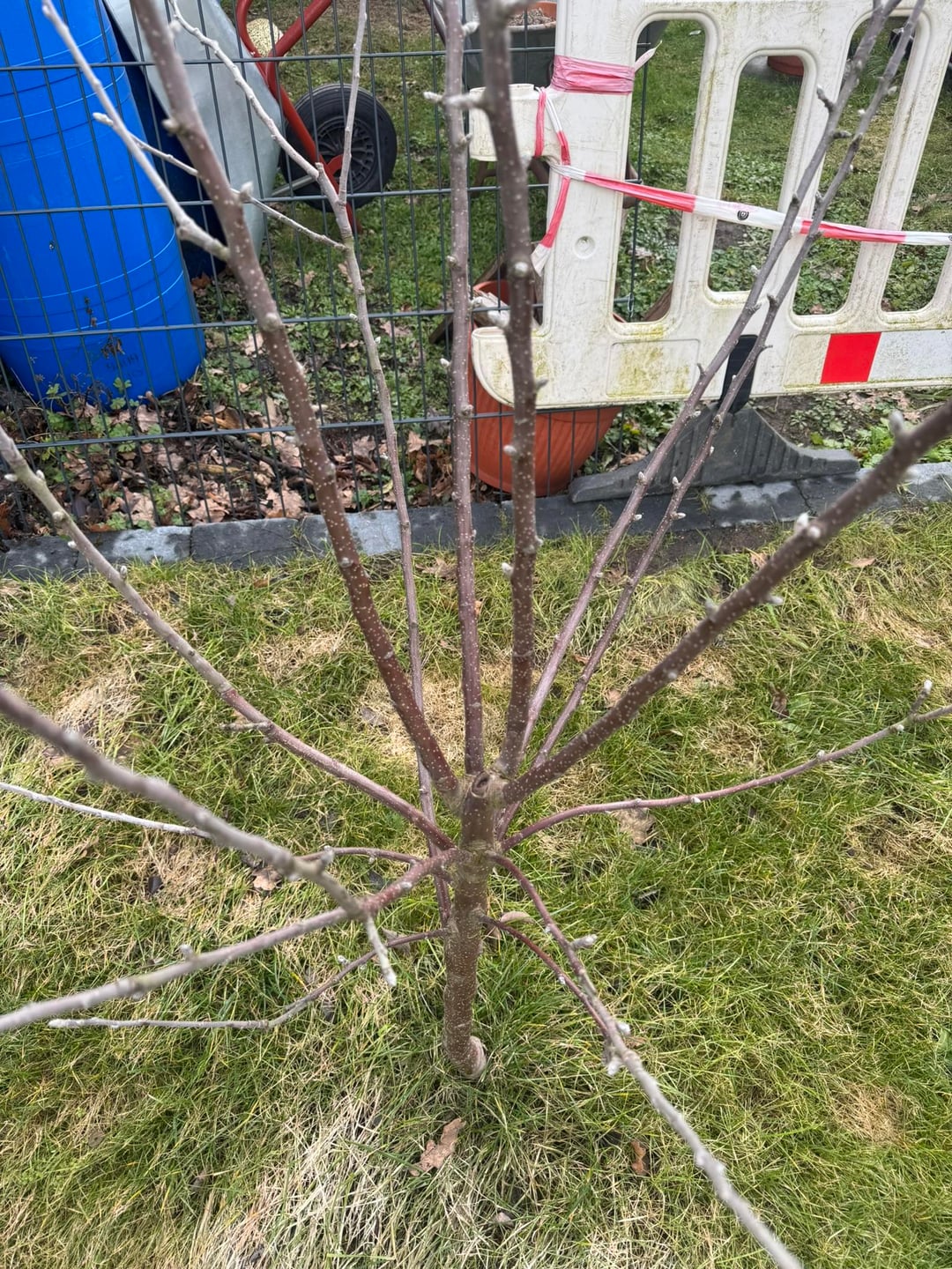 Ich habe schon viel gelesen und mir Videos von der Obstbaumschule Schreiber angeschaut, bin mir aber unsicher, wie ich den Baum jetzt genau schneiden soll, insbesondere, welches der Haupttrieb sein soll. Ich habe quasi 4 Haupttriebe wie ein Stern, die alle fast gleichgroß und auf einer Ebene sind. Kann ich mir jetzt einen als Stamm aussuchen und die anderen drei als Seitentriebe verwenden, obwohl die auf einer ebene sind?