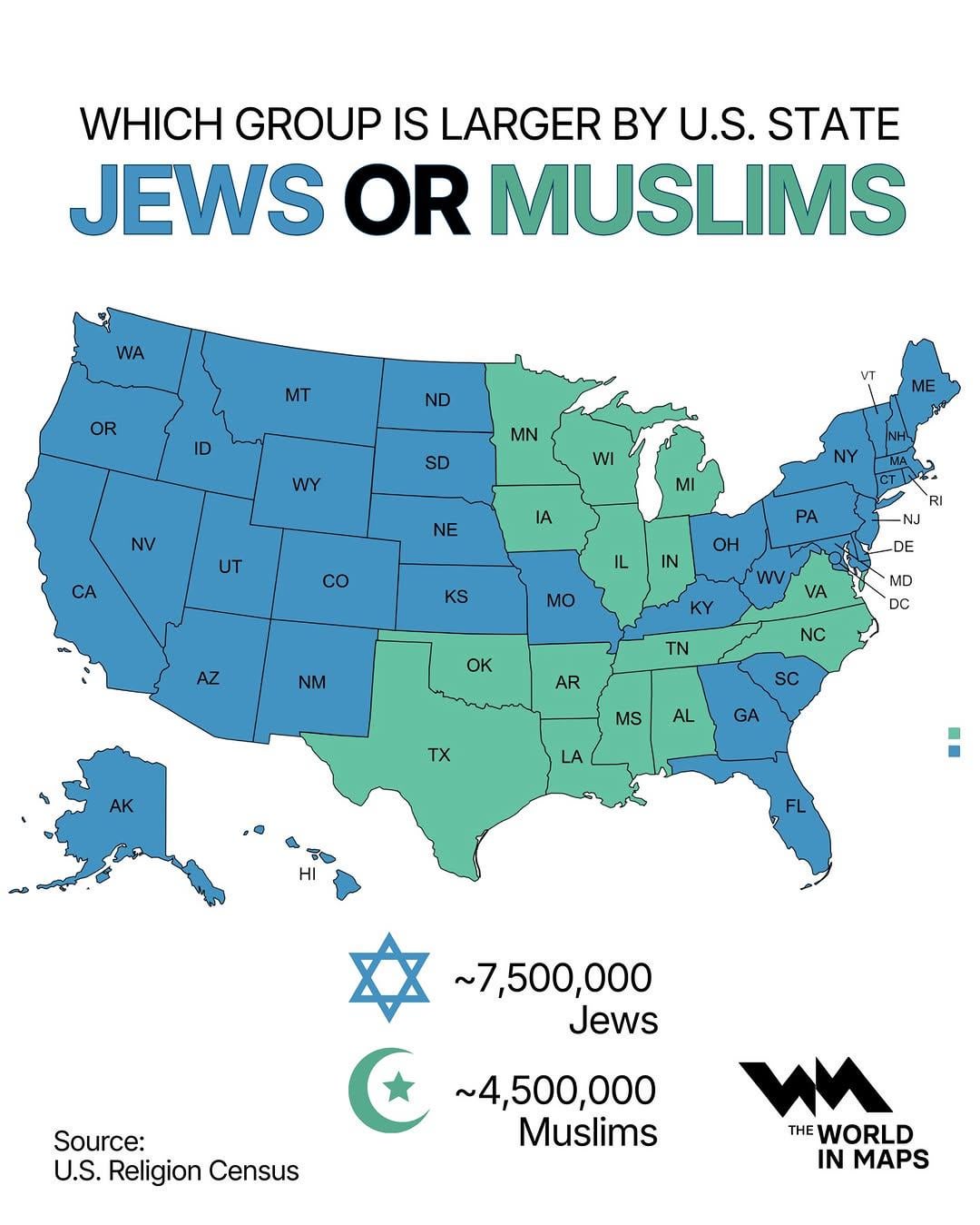 4. Some of these aren’t accurate. South Dakota has only 300-400 Jews and over 500 Muslims.