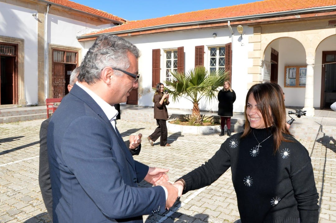 Der Anführer der türkisch-zyprischen Gemeinschaft, Herr Tufan Erhürman, besuchte gestern zusammen mit den griechischen Zyprioten das Rizokarpaso-Gymnasium im besetzten Dorf.