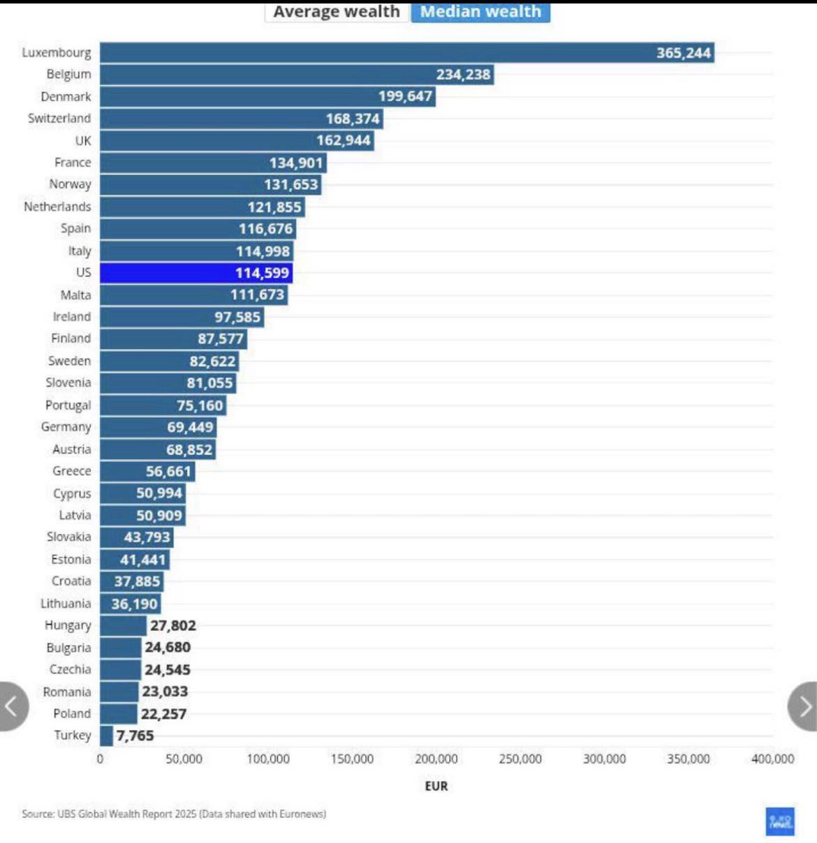 It is also only wealth, not income. The median Austrian earns more than the median Slovene, but because they pay rent rather than mortgage, they don’t keep the wealth but transfer it to the landlord. Their disposable income and standard of living are still higher.
