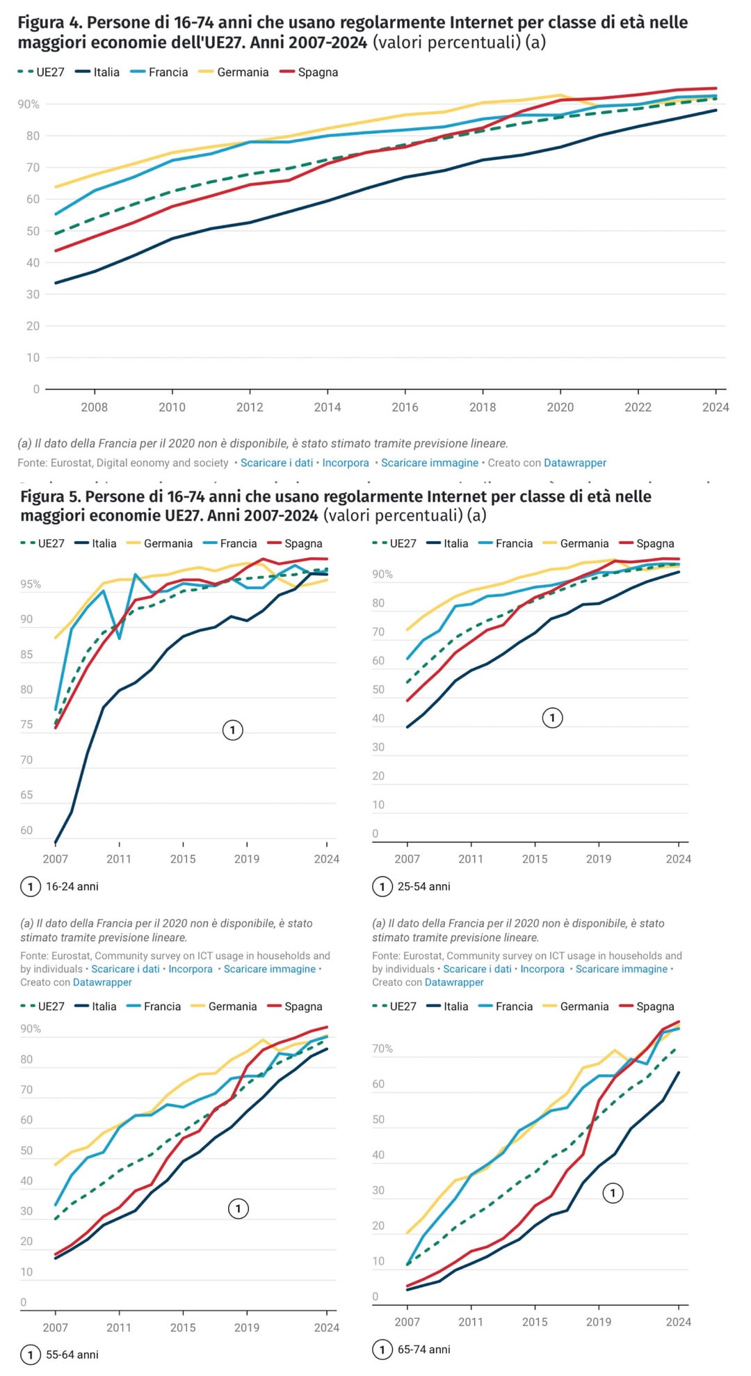 Hier ist der ganze Bericht: https://webpub.istat.it/progetto/percorsi-digitali-della-popolazione-italiana-evoluzione-sfide-e-obiettivi-europei/documento
