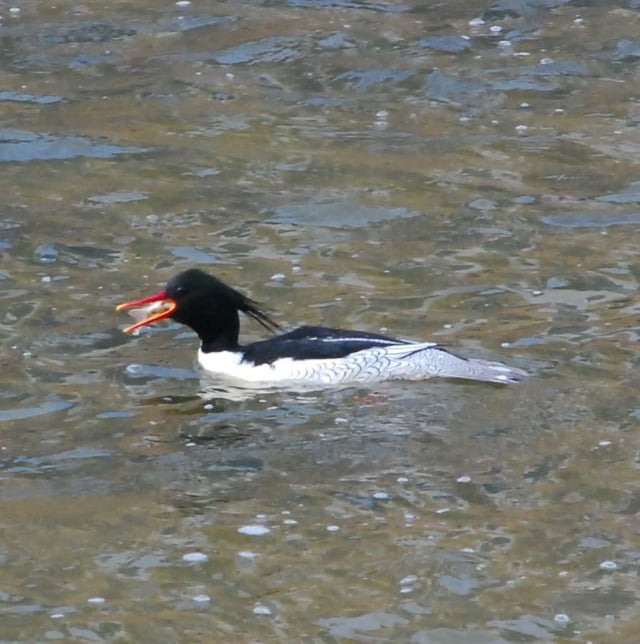 I’ve seen plenty of Common Mergansers/Goosanders (비오리) here in Uijeongbu but I was lucky enough to spot a male Scaly-sided Merganser recently while out on a walk. Scaly-sided mergansers are listed as a globally endangered species and sources online say that the population consists of around 1,000-2,500 individuals. Korea has designated them as Natural Monument #448 under the Natural Heritage Protection Law (문화재보호법).