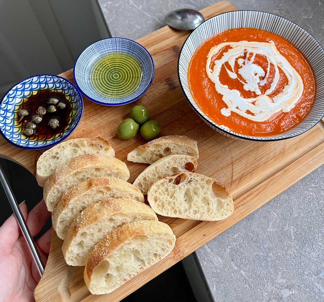 Geröstete Tomatensuppe mit selbstgemachtem Ciabatta